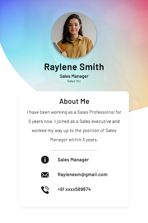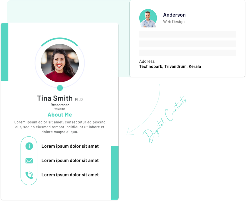 Create your Virtual Business Card within minutes with impressive rich content and design. Share your Digital Business Card from anywhere & anytime.